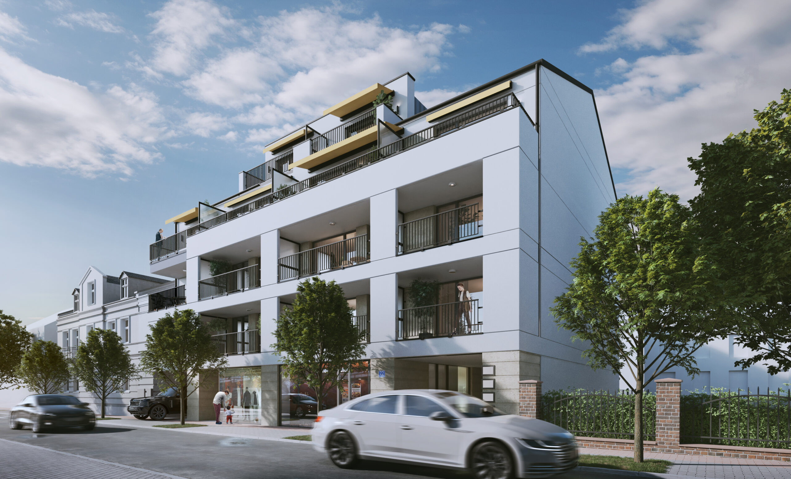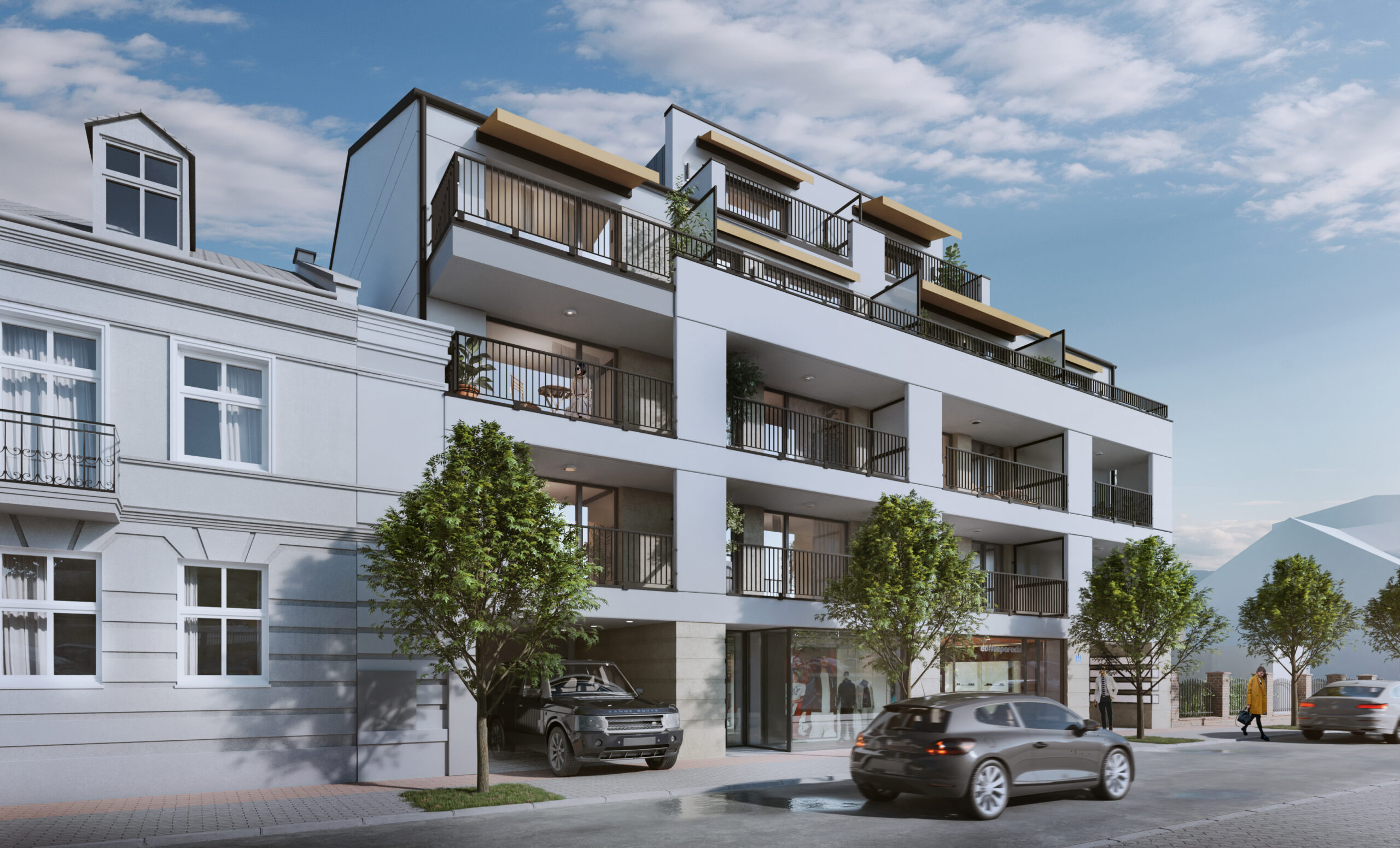 Budynek wielorodzinny zlokalizowany w ścisłym centrum Pruszkowa, vis-a-vis parku miejskiego im. T. Kościuszki. Obiekt projektowany jako plomba urbanistyczna na ciasnej działce o pow. 990 m2. W spiętrzonej od podwórza bryle z fasadą tworzącą pierzeję ul. Chopina zaprojektowano 17 mieszkań oraz 3 lokale użytkowe. Miejsca postojowe zlokalizowano w garażu podziemnym.