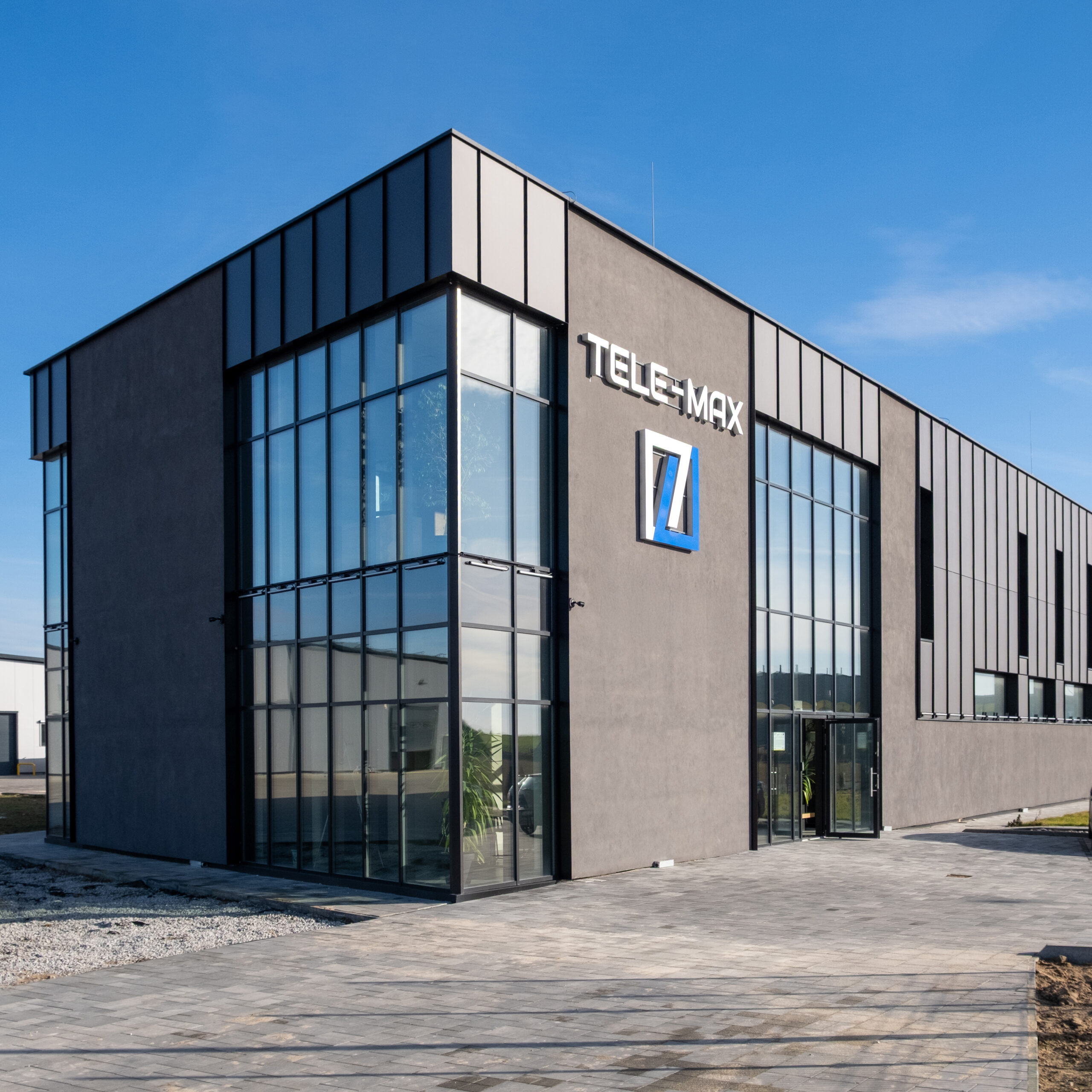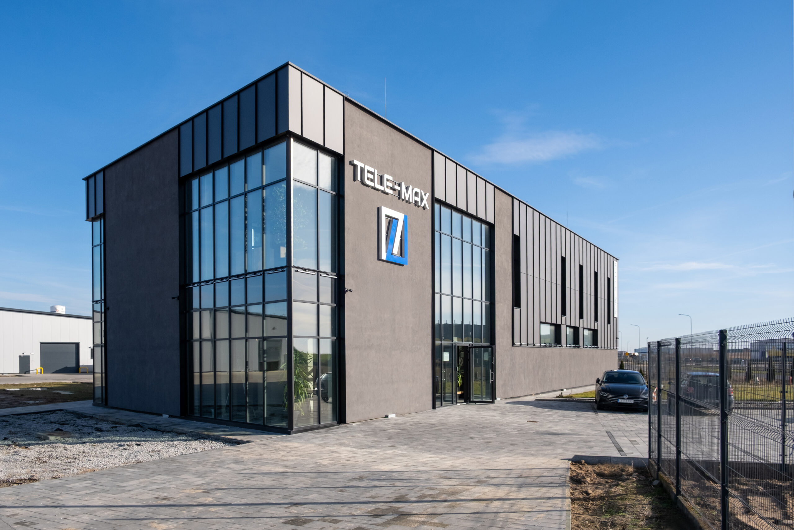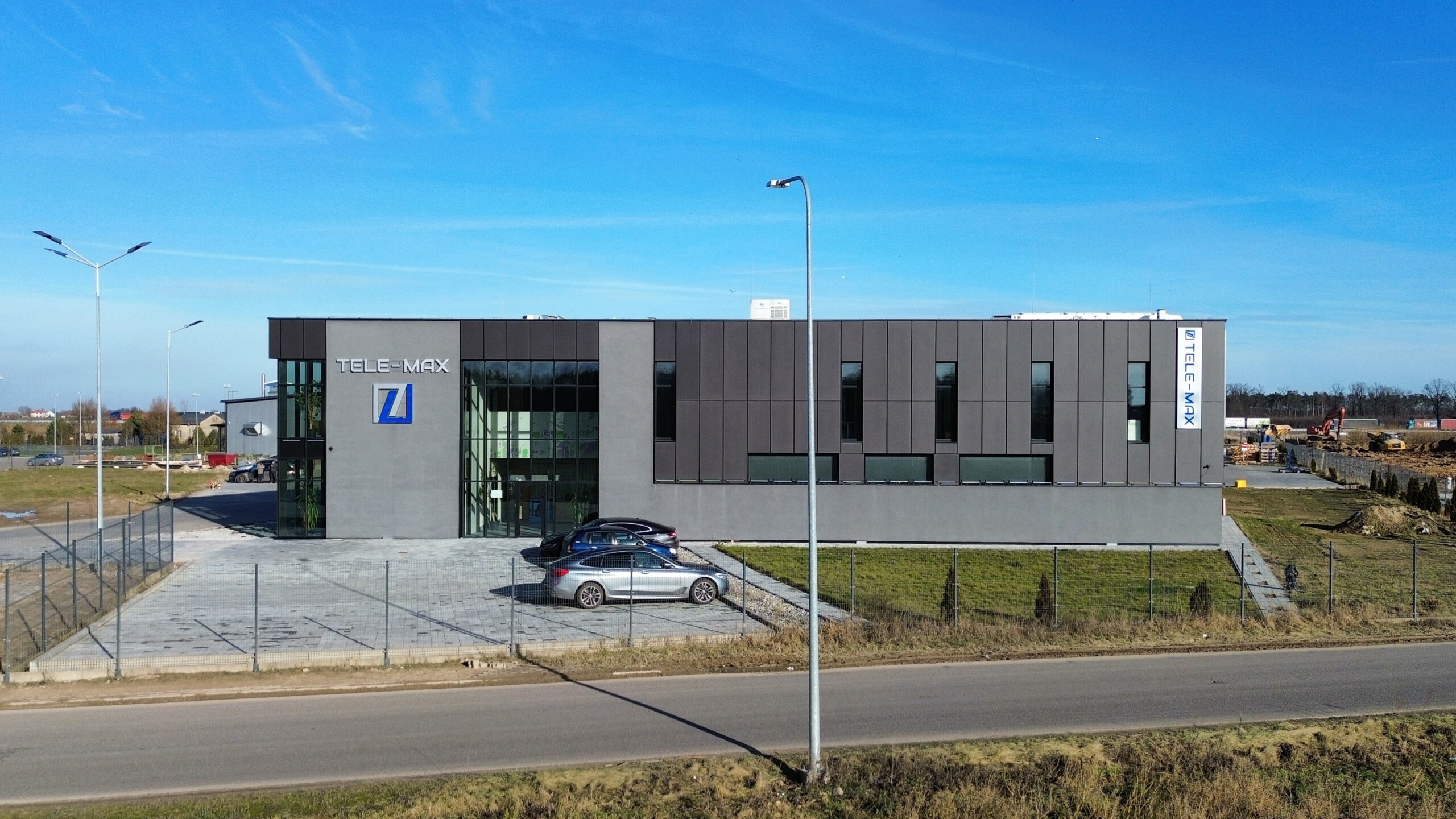 Nowa siedziba firmy TELE-MAX to miejsce łączące funkcję biurową oraz badawczą. Nietypowy kształt bryły wynika z uwarunkowań działki oraz specyficznych funkcji laboratoryjnych wewnętrz budynku. Ideą projektu było stworzenie budynku eleganckiego i o rytmicznej strukturze. Elewację podzielono na moduły nadając jej porządek, a zróżnicowanie materiałów podkreśla przenikające się w budynku funkcje.